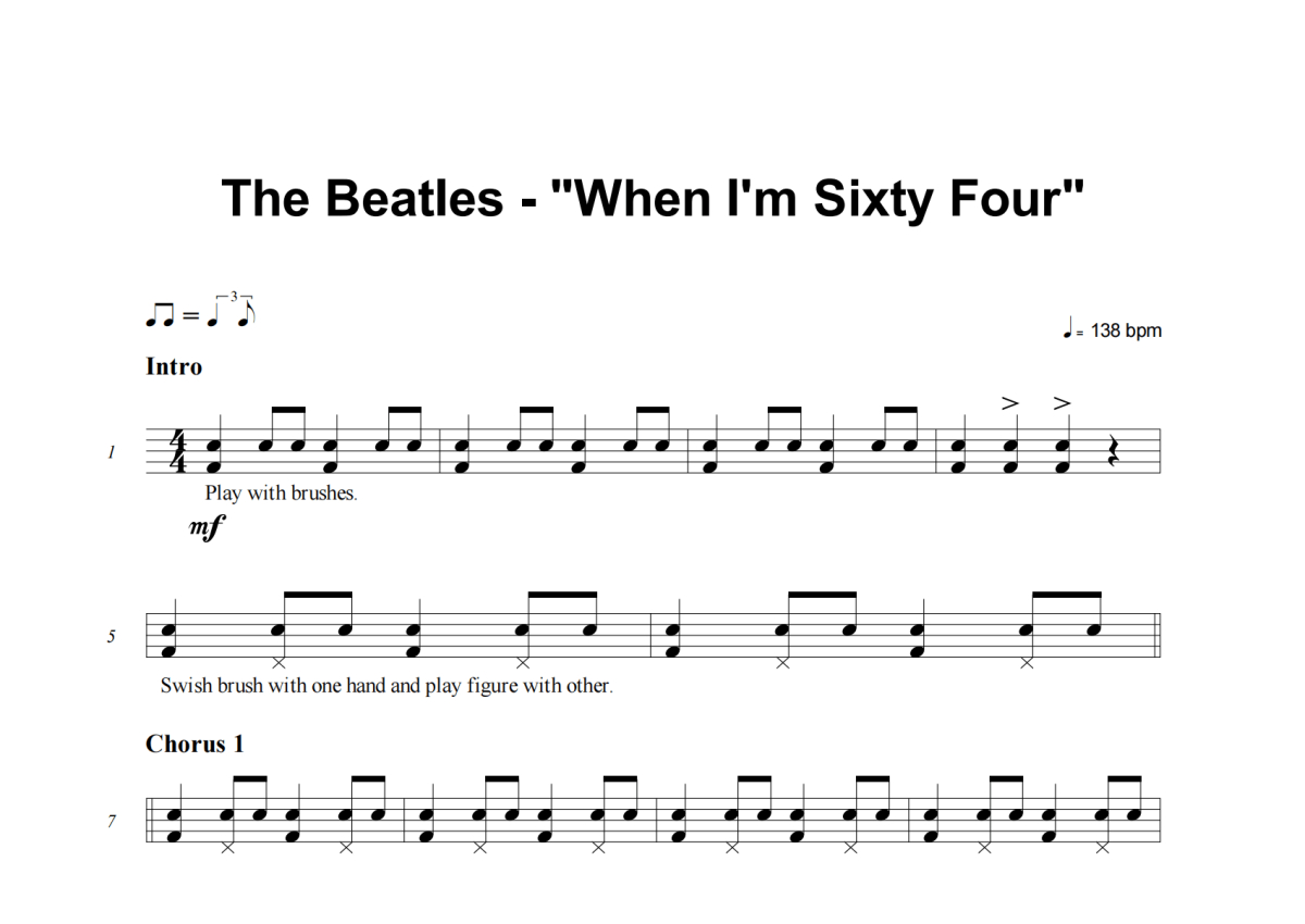 The Beatles《When I'm Sixty Four》架子鼓谱