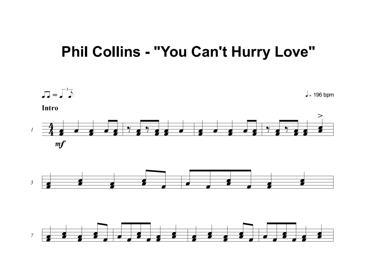 Phil Collins《You Can't Hurry Love》架子鼓谱