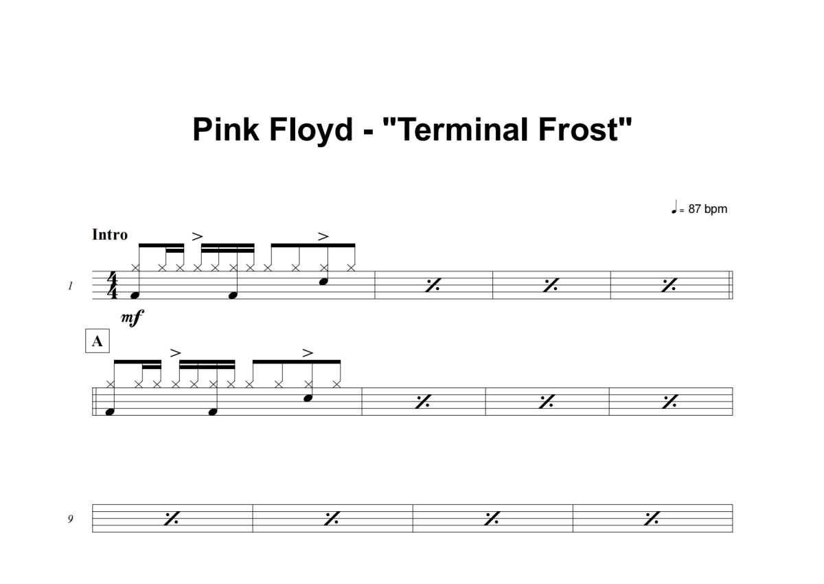 Pink Floyd《Terminal Frost》架子鼓谱
