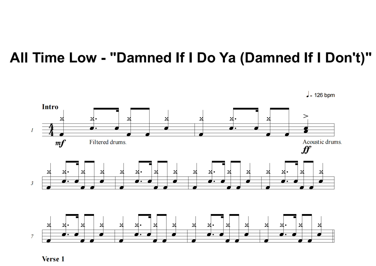 All Time Low《Damned If I Do Ya (Damned If I Don't)》架子鼓谱