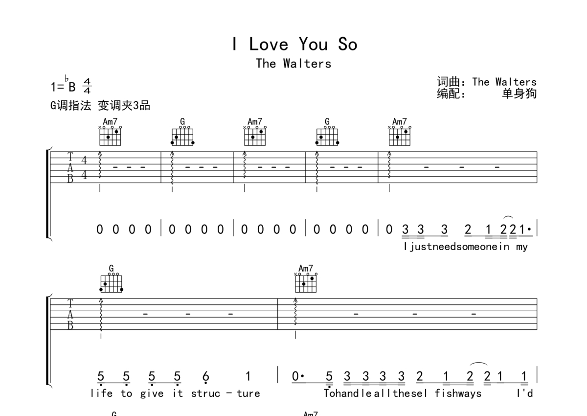 The Walters《I Love You So》吉他谱 - G调弹唱六线谱