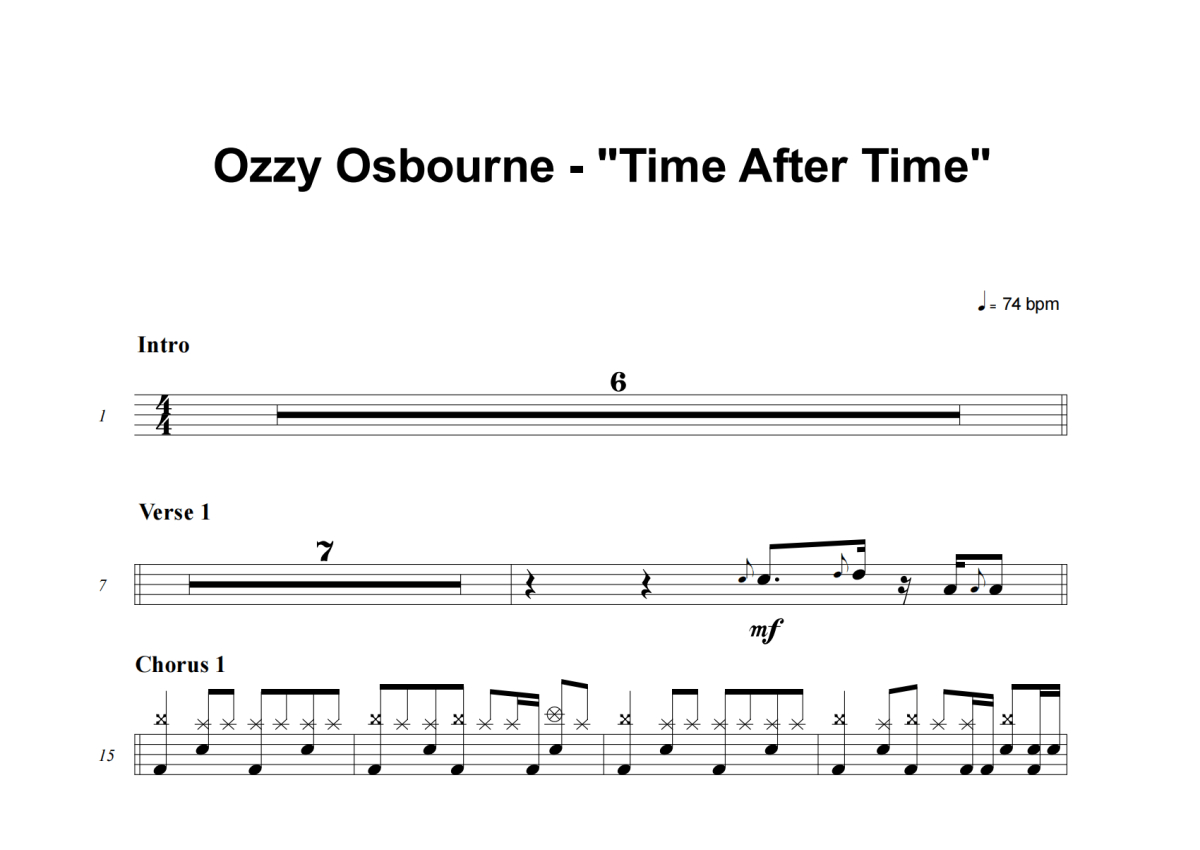 Ozzy Osbourne《Time After Time》架子鼓谱
