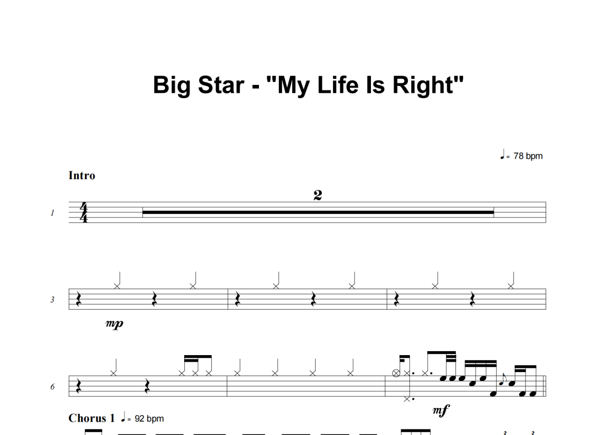 Big Star《My Life Is Right》架子鼓谱