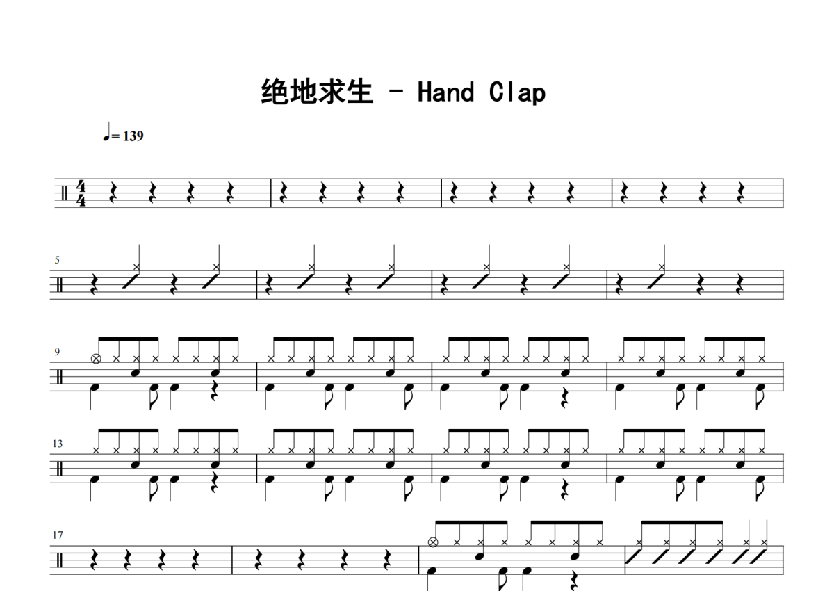 绝地求生《handclap》架子鼓谱