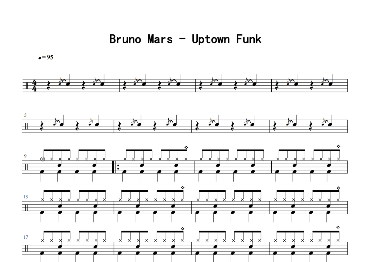 Bruno Mars《uptownfunk》架子鼓谱