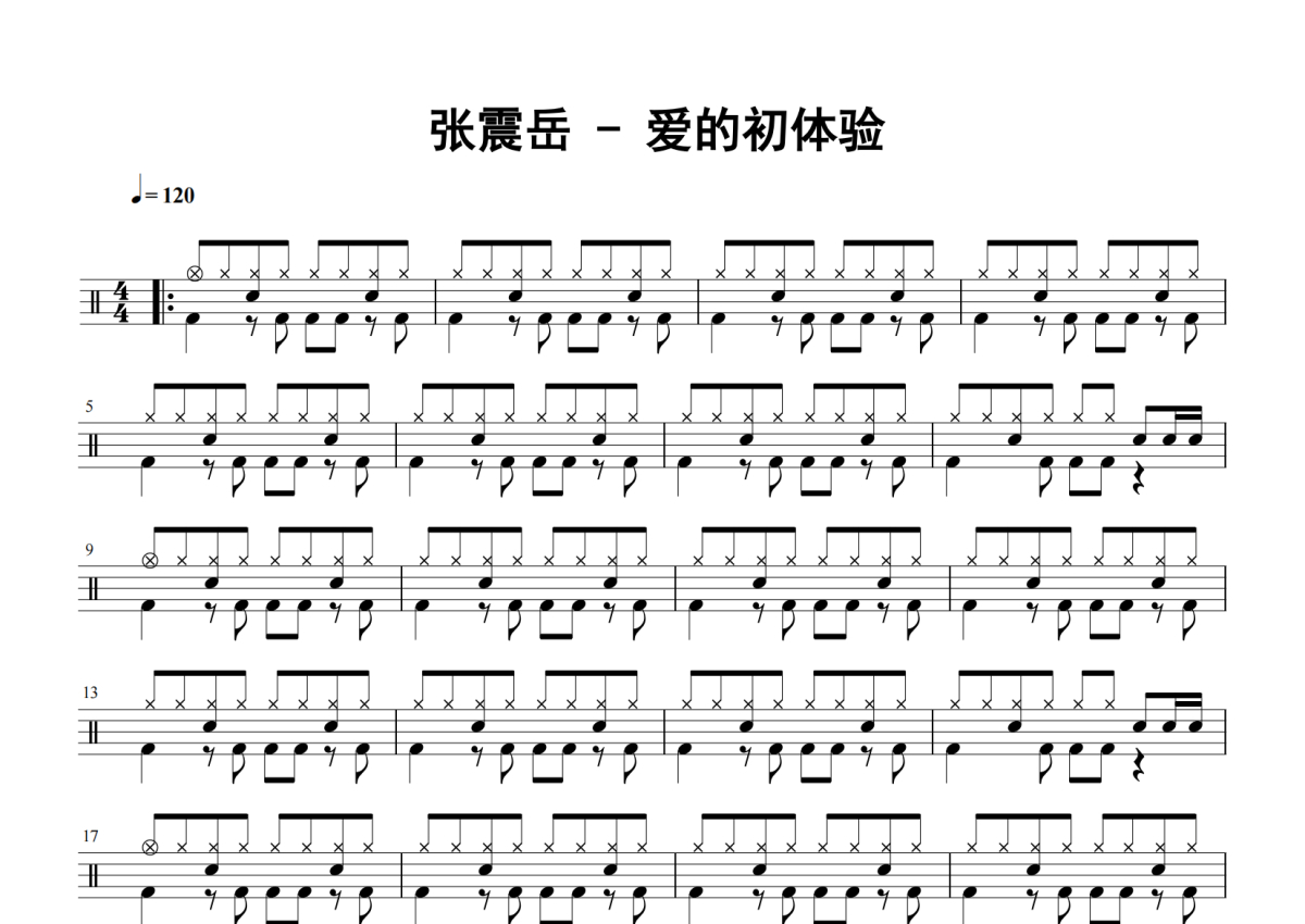 《爱之初体验》是张震岳演唱的一首歌曲,这份架子鼓谱共有两张高清图谱,图谱由 @失眠的土豆 编配上传,图谱使用五线谱编配,使用这份爱之初体验架子鼓谱,你将能够轻松地敲打出这首张震岳的爱之初体验,快来尝试吧。