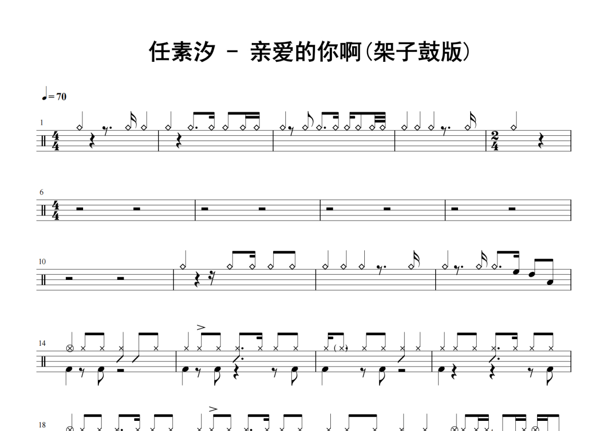 任素汐《亲爱的你啊》架子鼓谱 - 架子鼓版