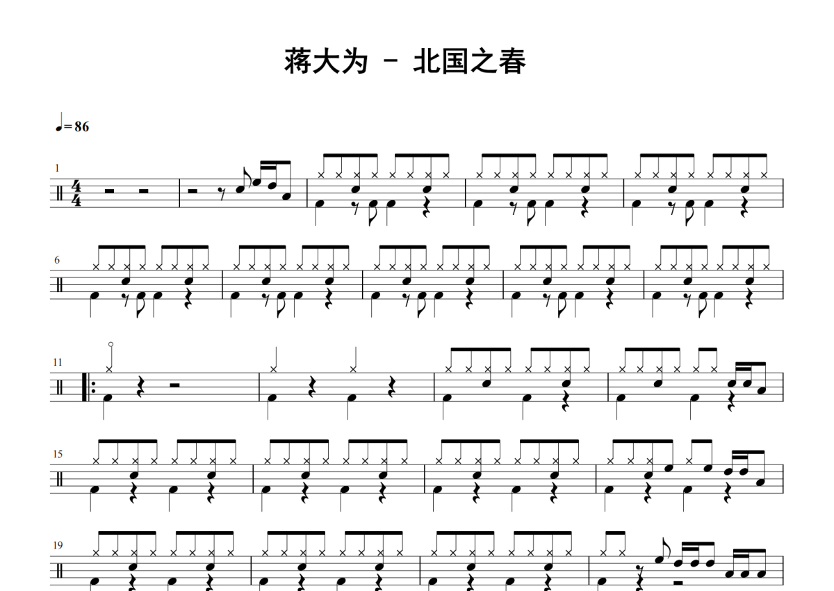 蒋大为《北国之春》架子鼓谱