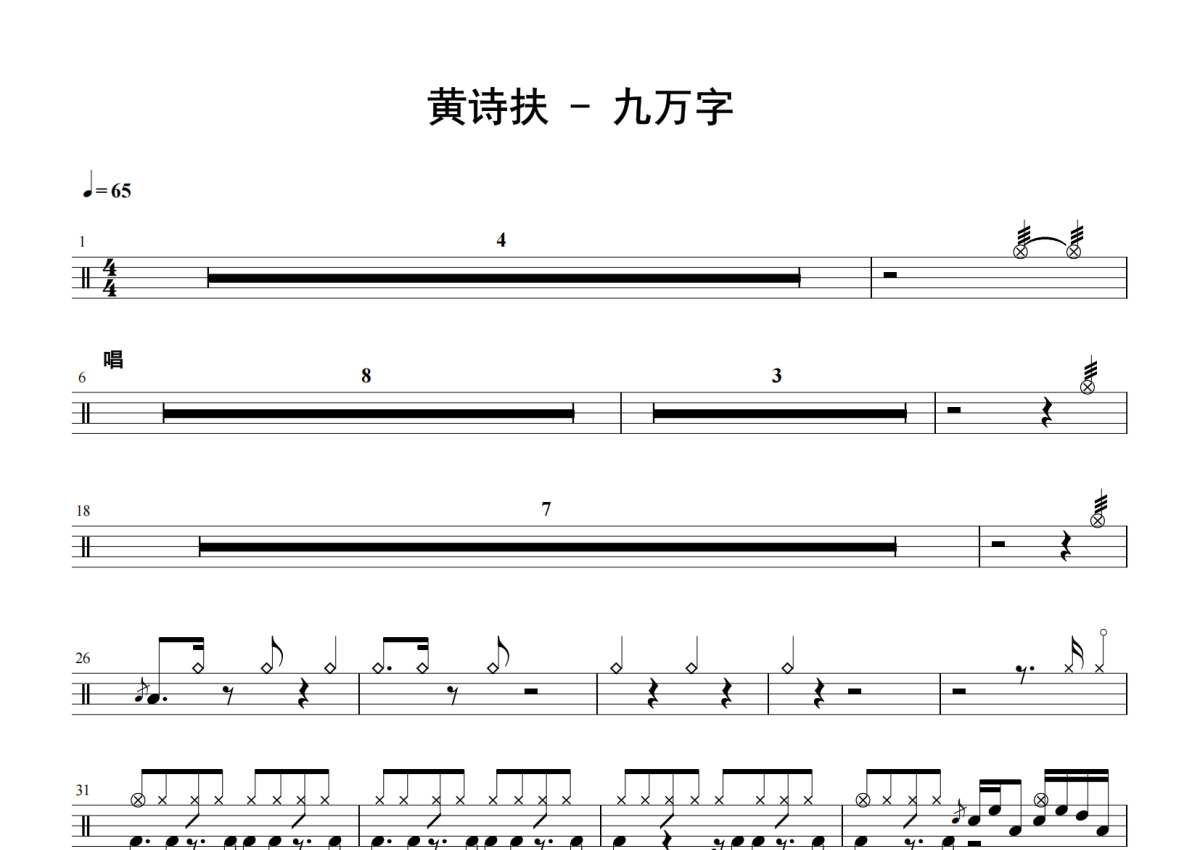 九万字架子鼓谱 - 黄诗扶演唱