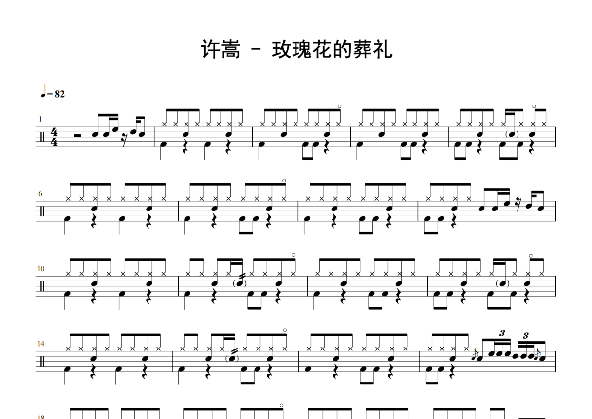 许嵩《玫瑰花的葬礼》架子鼓谱
