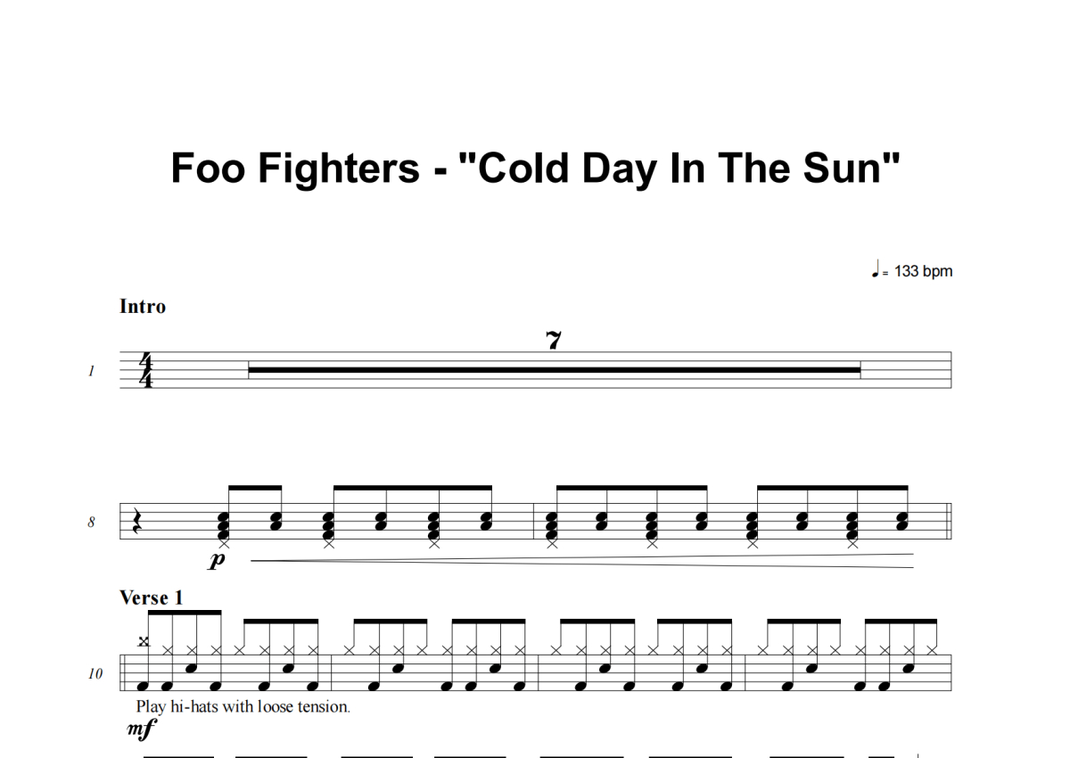Foo Fighters《Cold Day In The Sun》架子鼓谱