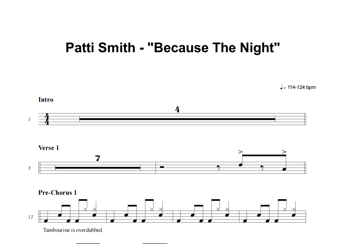 Patti Smith《Because The Night》架子鼓谱