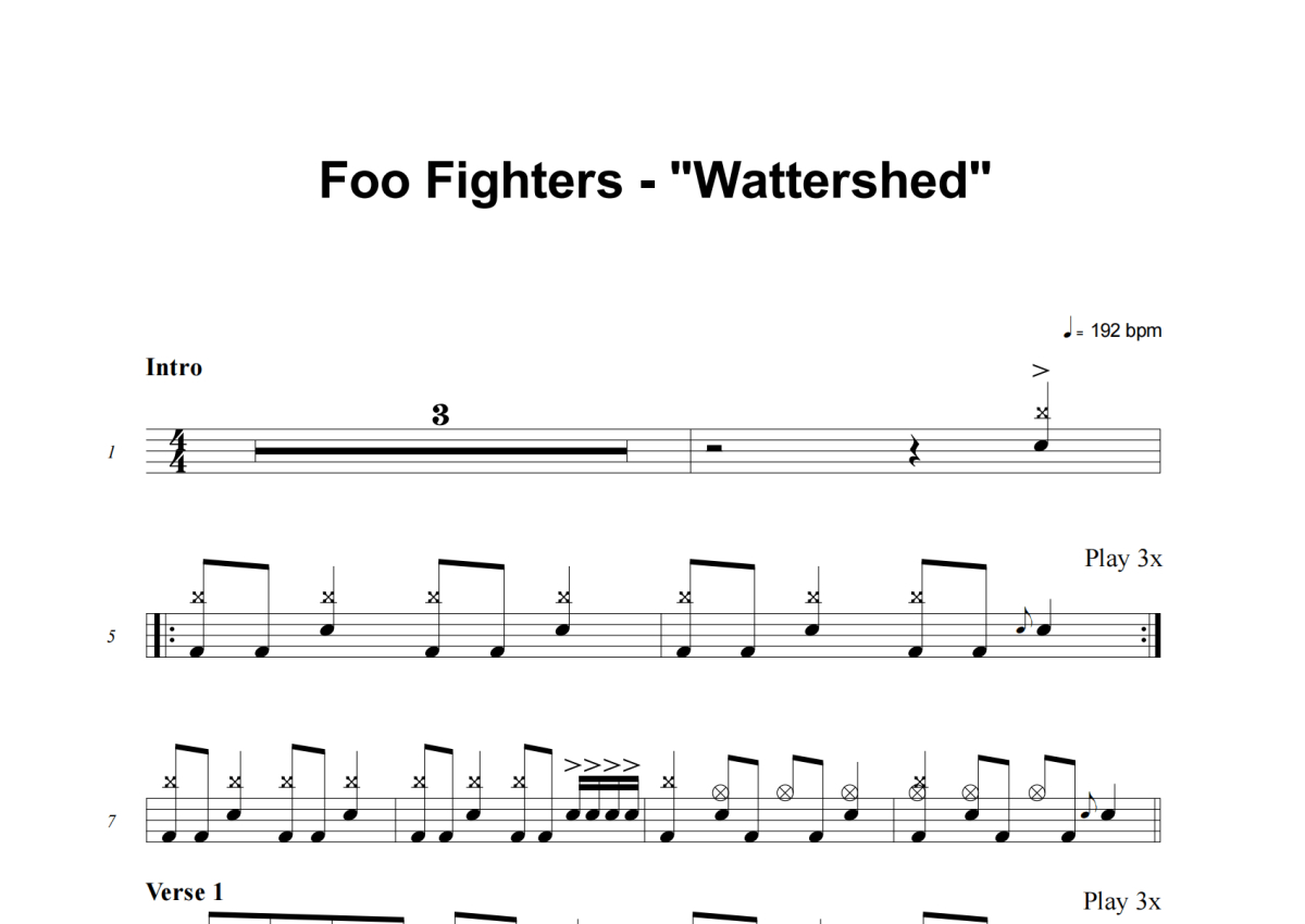 《Wattershed》是Foo Fighters演唱的一首歌曲,这份架子鼓谱共有四张高清图谱,图谱由 @失眠的土豆 编配上传,图谱使用五线谱编配,使用这份Wattershed架子鼓谱,你将能够轻松地敲打出这首Foo Fighters的Wattershed,快来尝试吧。