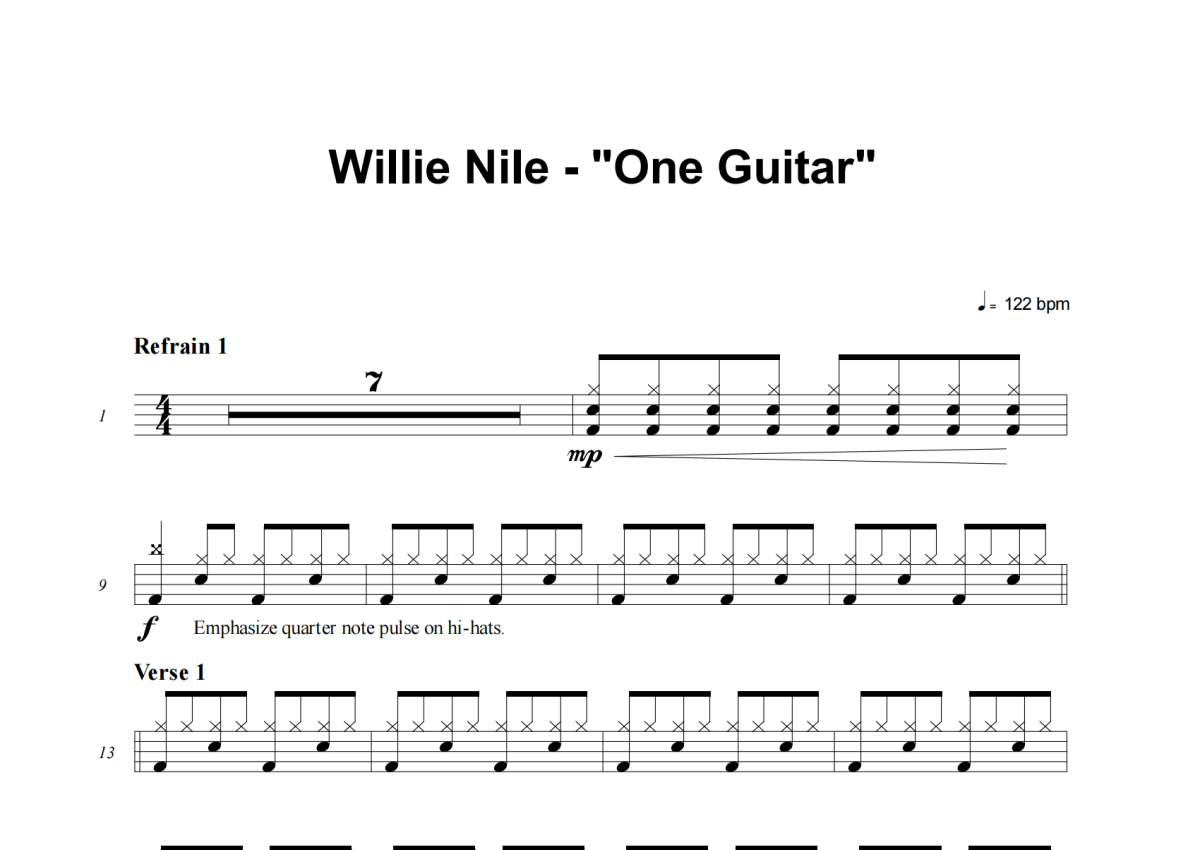 Willie Nile《One Guitar》架子鼓谱