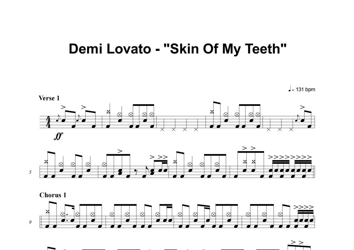 Demi Lovato《Skin Of My Teeth》架子鼓谱