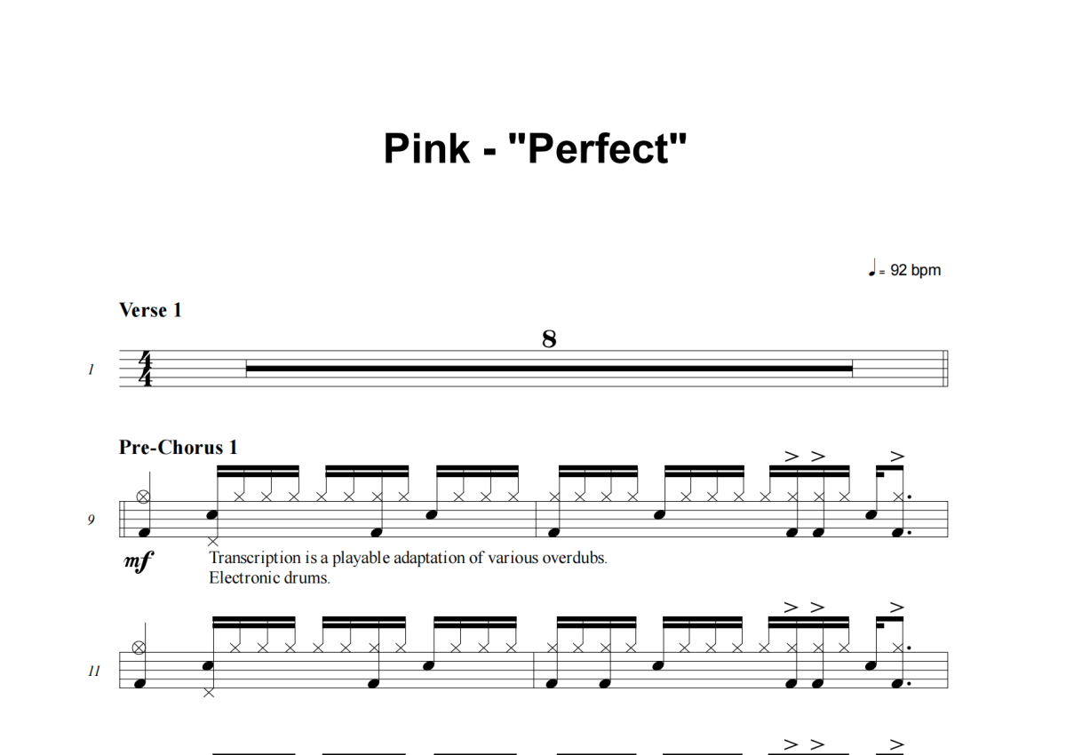 P!nk《Perfect》架子鼓谱