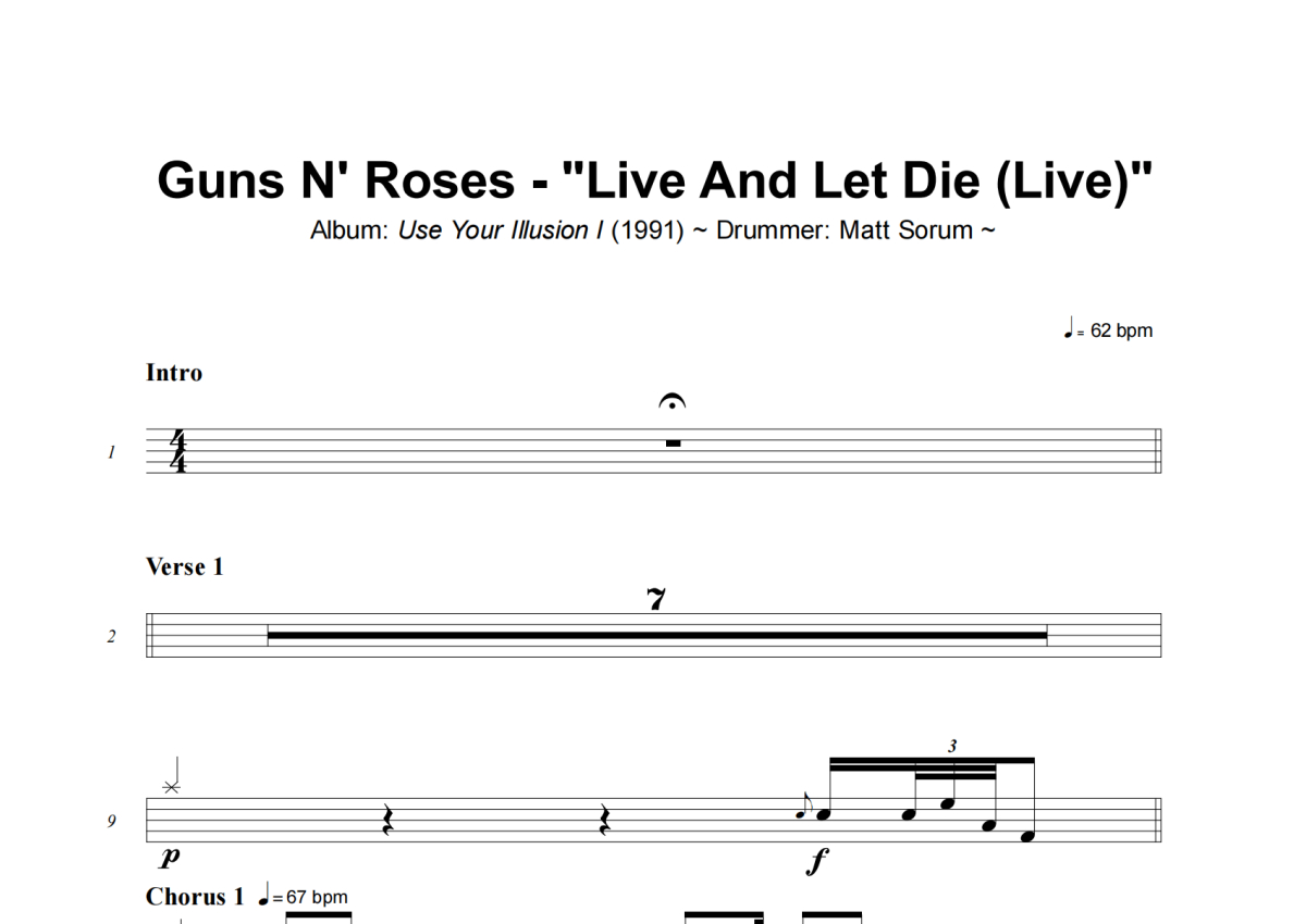 Guns N' Roses《Live and Let Die》架子鼓谱 - Live