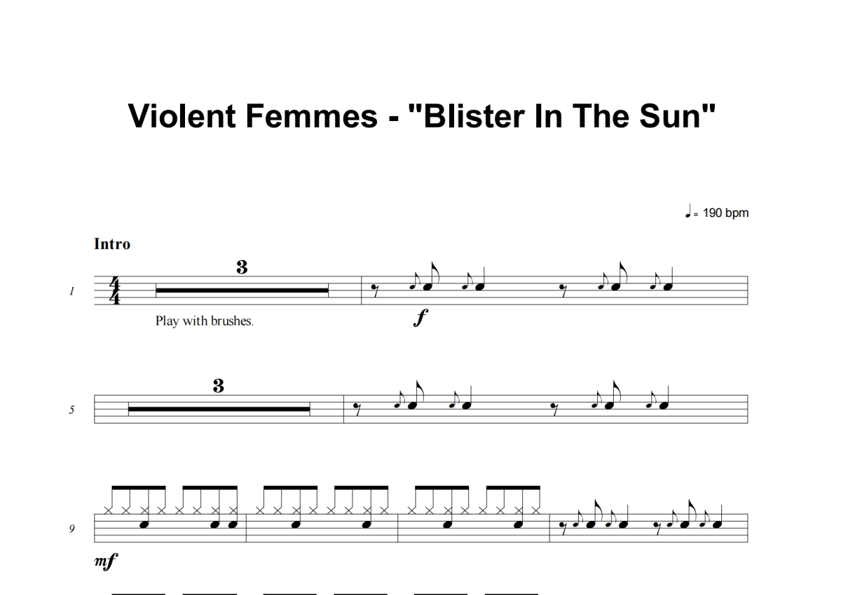 Violent Femmes《Blister in The Sun》架子鼓谱