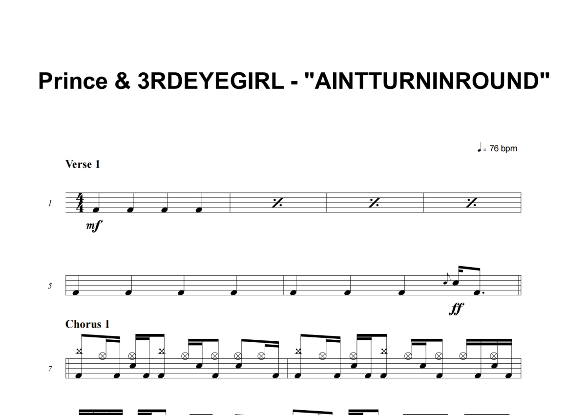 Prince&3RDEYEGIRL《AINTTURNINROUND》架子鼓谱