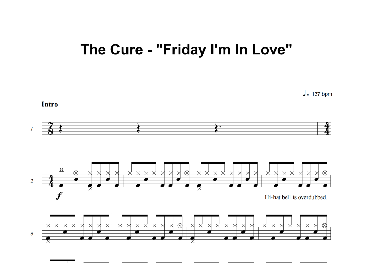 The Cure《Friday I'm In Love》架子鼓谱