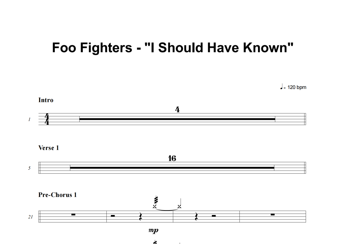 Foo Fighters《I Should Have Known》架子鼓谱