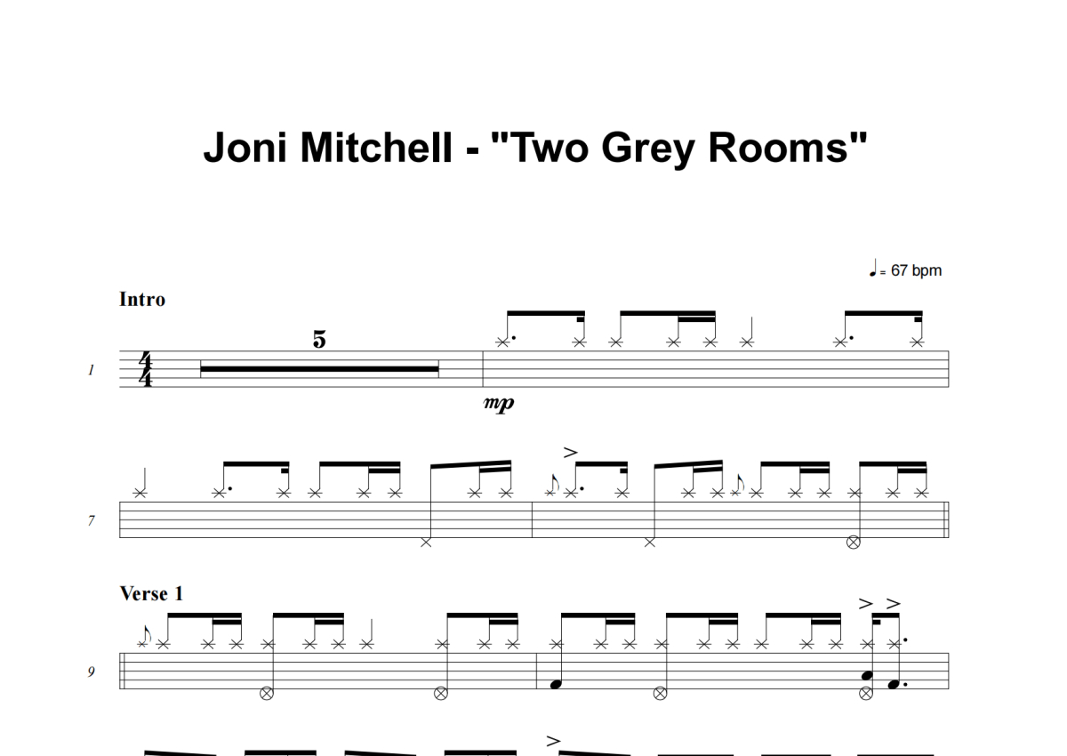 Two Grey Rooms架子鼓谱 - Joni Mitchell演唱