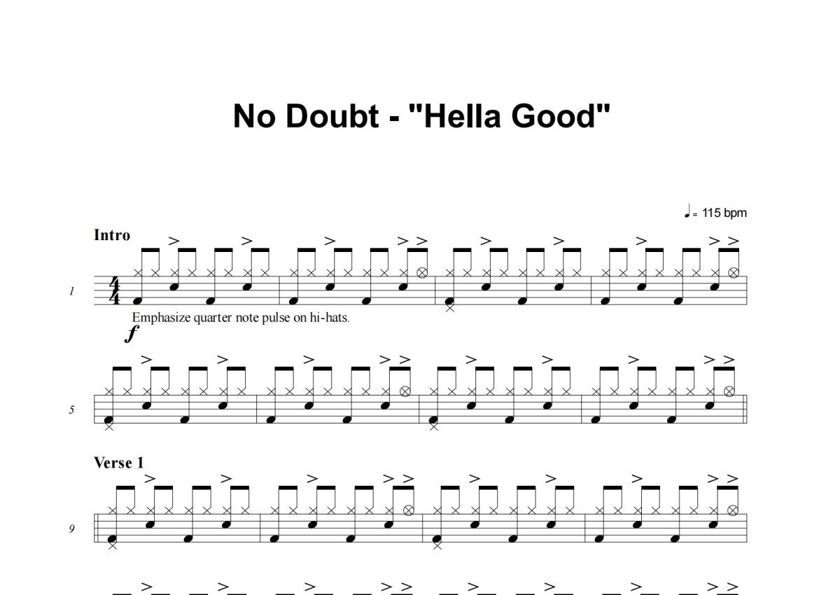 No Doubt《Hella Good》架子鼓谱