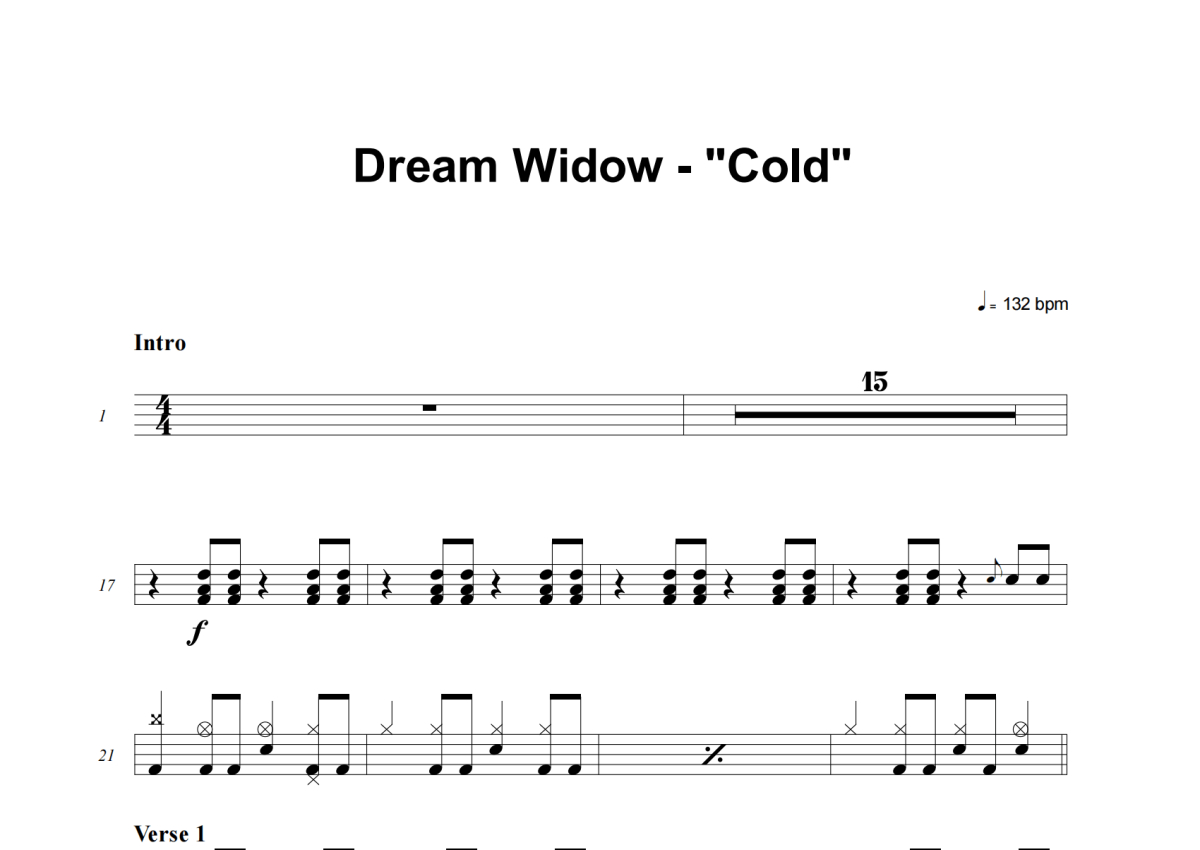 《Cold》是Foo Fighters演唱的一首歌曲,这份架子鼓谱共有五张高清图谱,图谱由 @失眠的土豆 编配上传,图谱使用五线谱编配,使用这份Cold架子鼓谱,你将能够轻松地敲打出这首Foo Fighters的Cold,快来尝试吧。