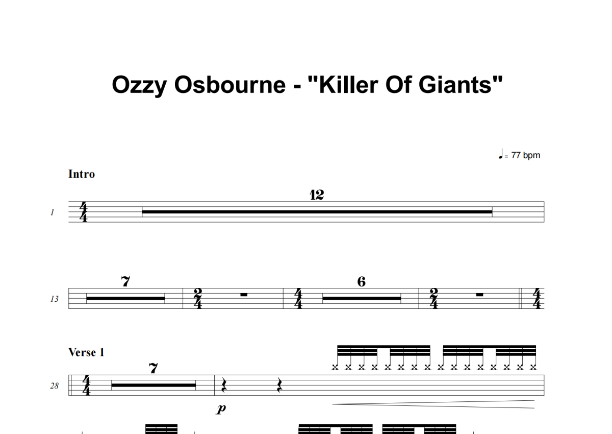 Ozzy Osbourne《Killer Of Giants》架子鼓谱