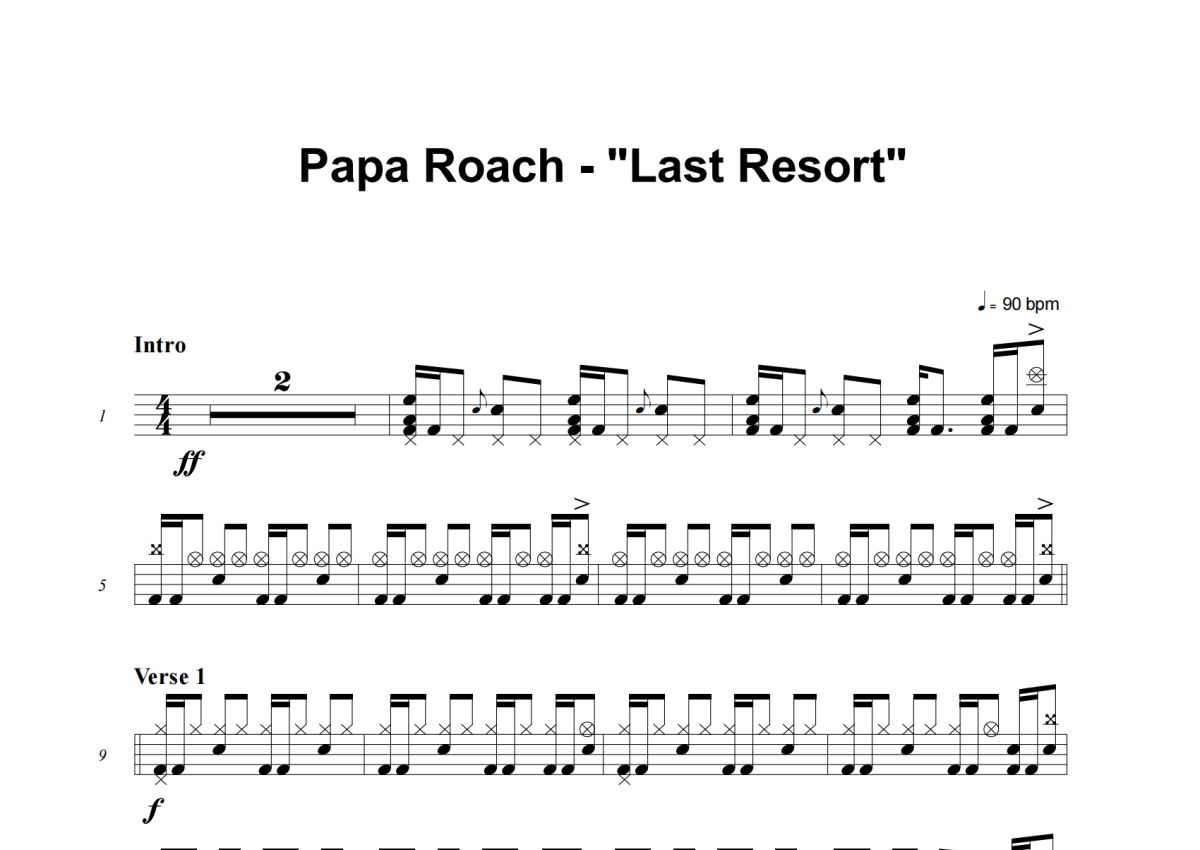 Last Resort架子鼓谱 - Papa Roach演唱