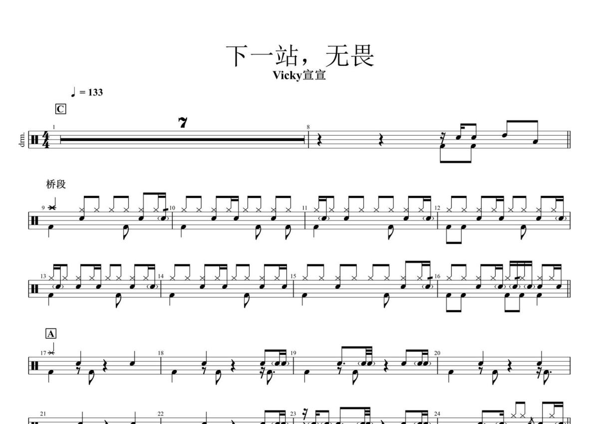 Vicky宣宣《下一站,无畏》架子鼓谱