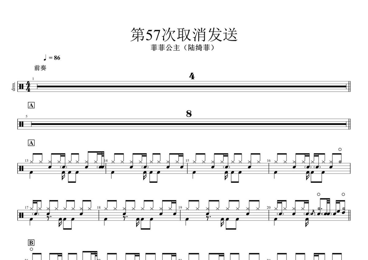《第57次取消发送》架子鼓谱 - 菲菲公主(陆绮菲)