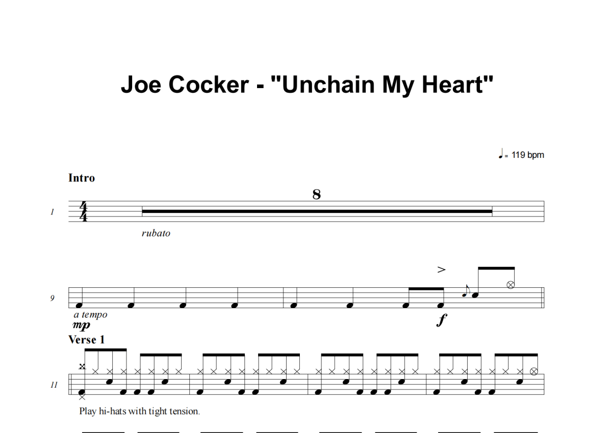 Joe Cocker《Unchain My Heart》架子鼓谱