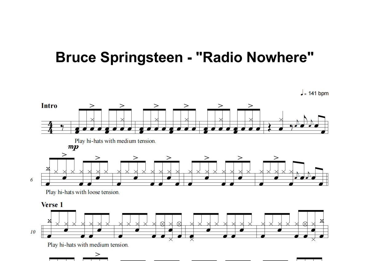 Bruce Springsteen《Radio Nowhere》架子鼓谱