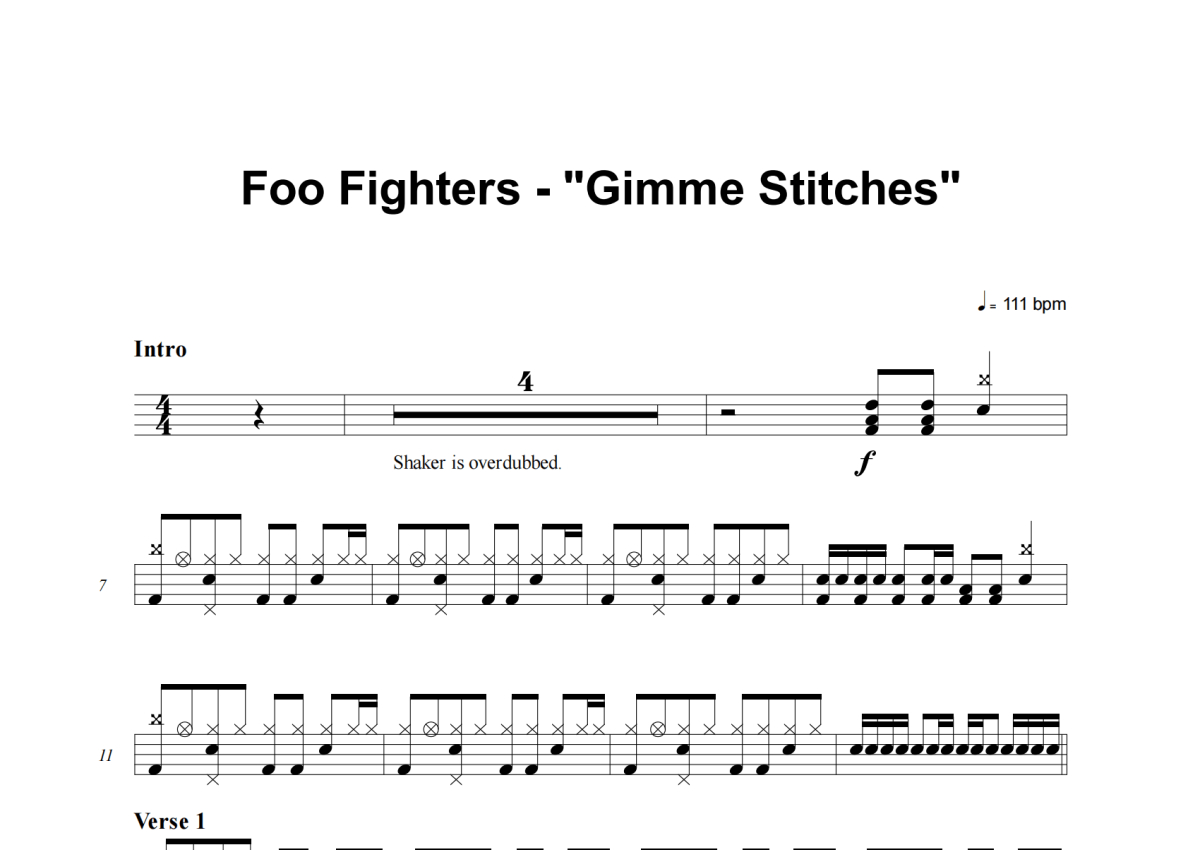 Foo Fighters《Gimme Stitches》架子鼓谱