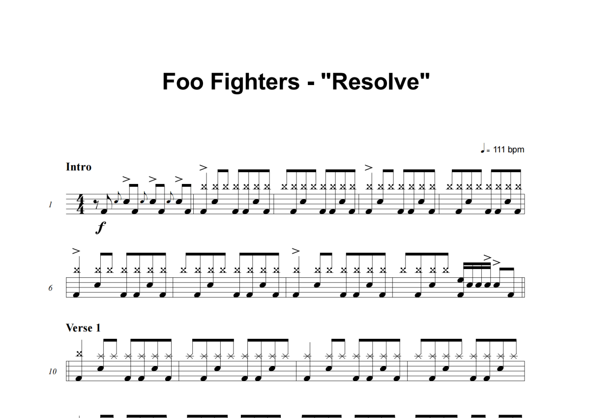 《Resolve》是Foo Fighters演唱的一首歌曲,这份架子鼓谱共有四张高清图谱,图谱由 @失眠的土豆 编配上传,图谱使用五线谱编配,使用这份Resolve架子鼓谱,你将能够轻松地敲打出这首Foo Fighters的Resolve,快来尝试吧。
