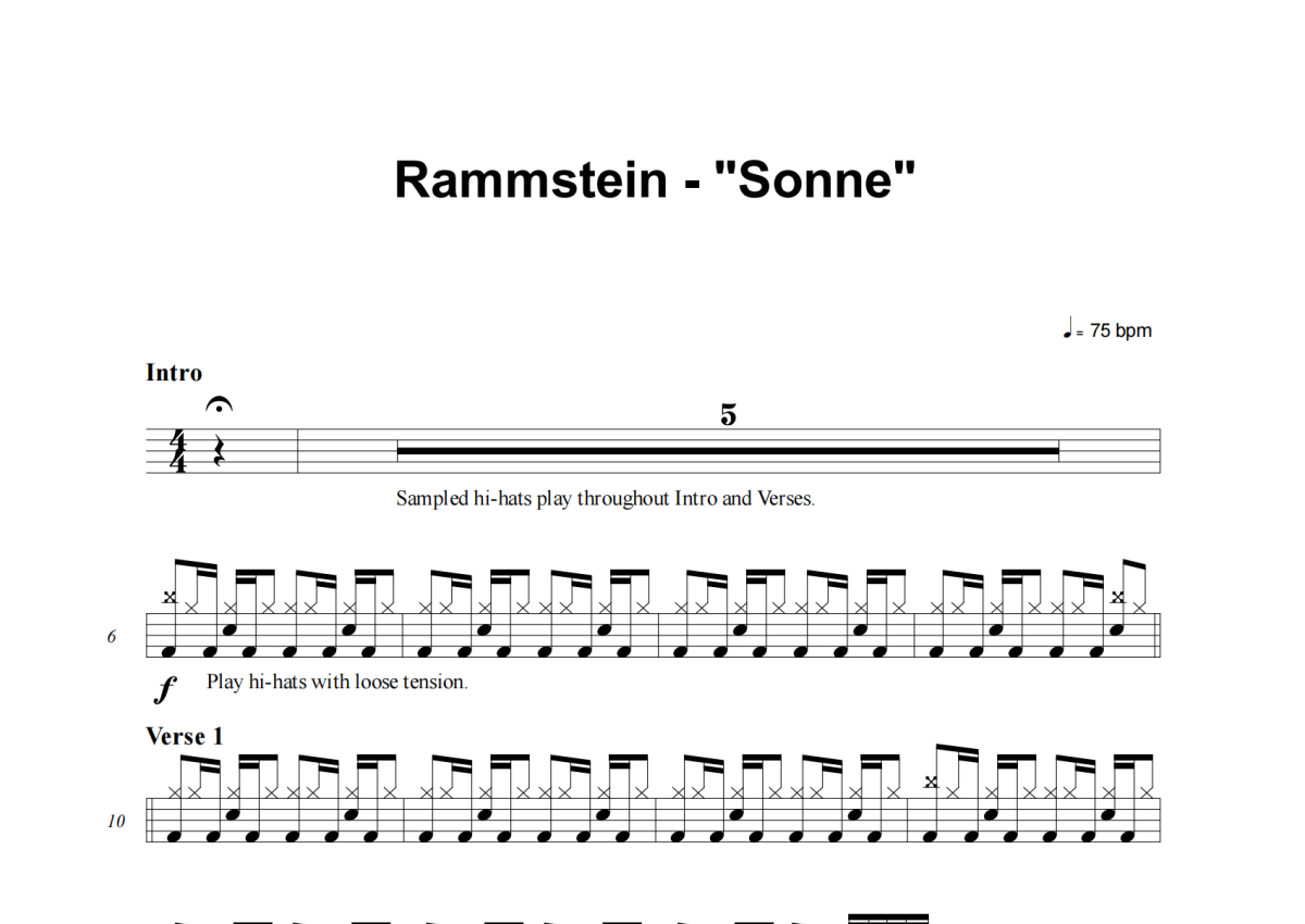 Rammstein《Sonne》架子鼓谱