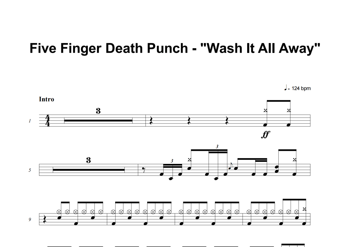 Five Finger Death Punch《Wash It All Away》架子鼓谱