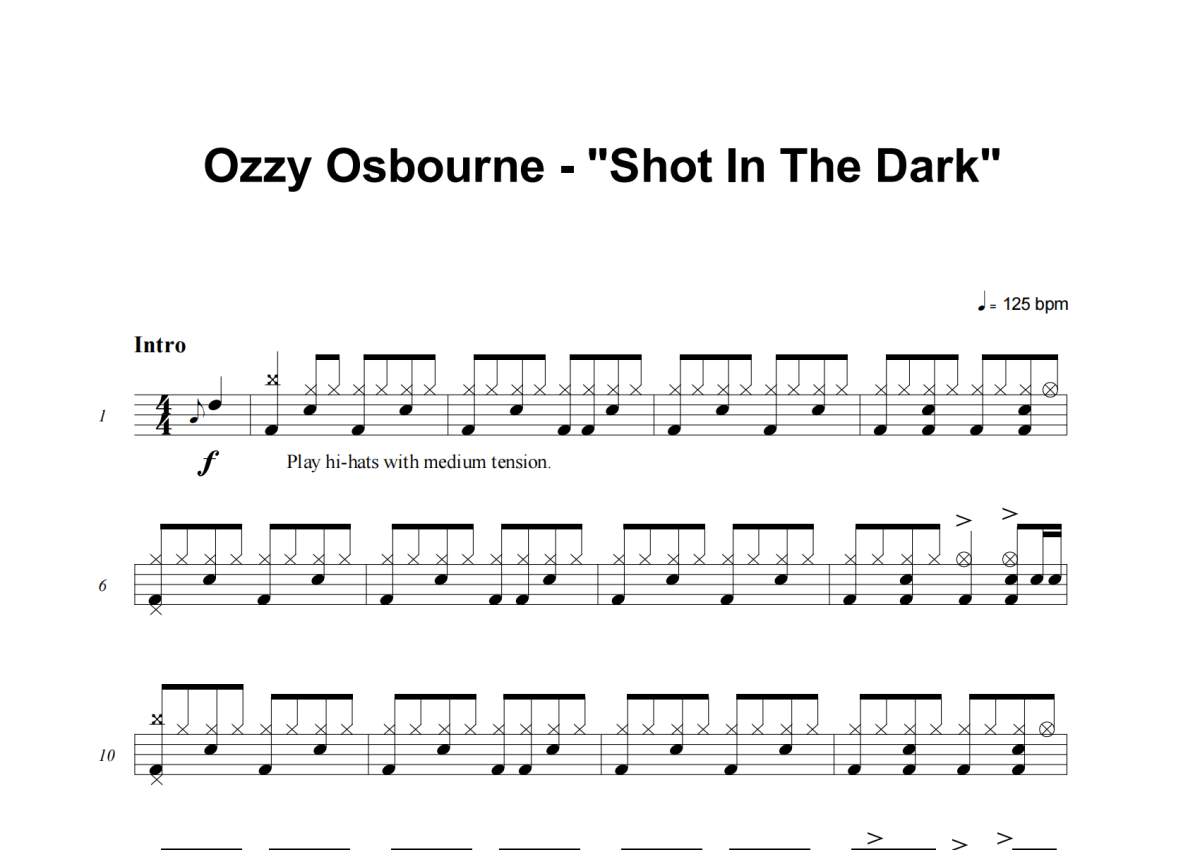 Ozzy Osbourne《Shot In The Dark》架子鼓谱