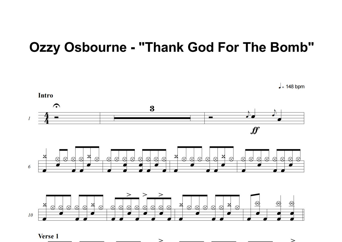 Ozzy Osbourne《Thank God For The Bomb》架子鼓谱