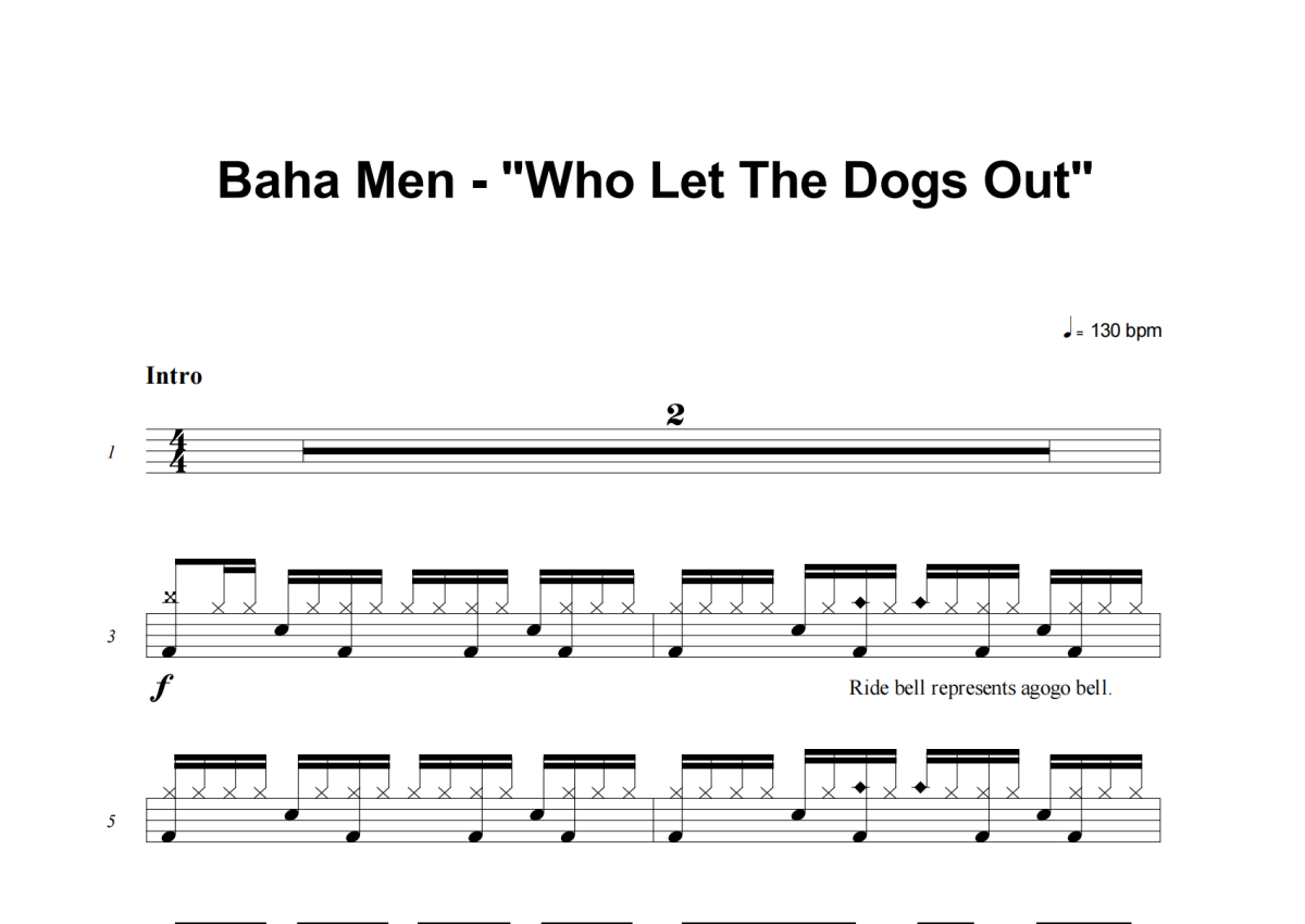 Baha Men《Who Let The Dogs Out》架子鼓谱