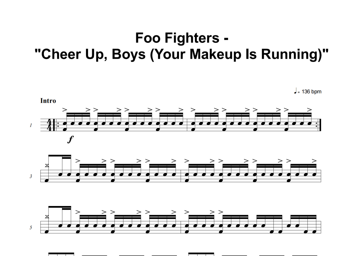 Foo Fighters《Cheer Up, Boys (Your Make Up Is Running)》架子鼓谱