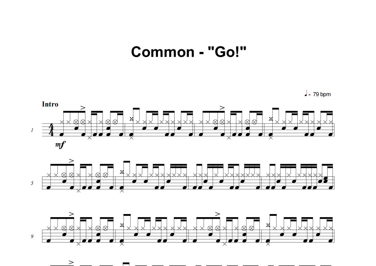《Go!》是Common演唱的一首歌曲,这份架子鼓谱共有三张高清图谱,图谱由 @失眠的土豆 编配上传,图谱使用五线谱编配,使用这份Go!架子鼓谱,你将能够轻松地敲打出这首Common的Go!,快来尝试吧。
