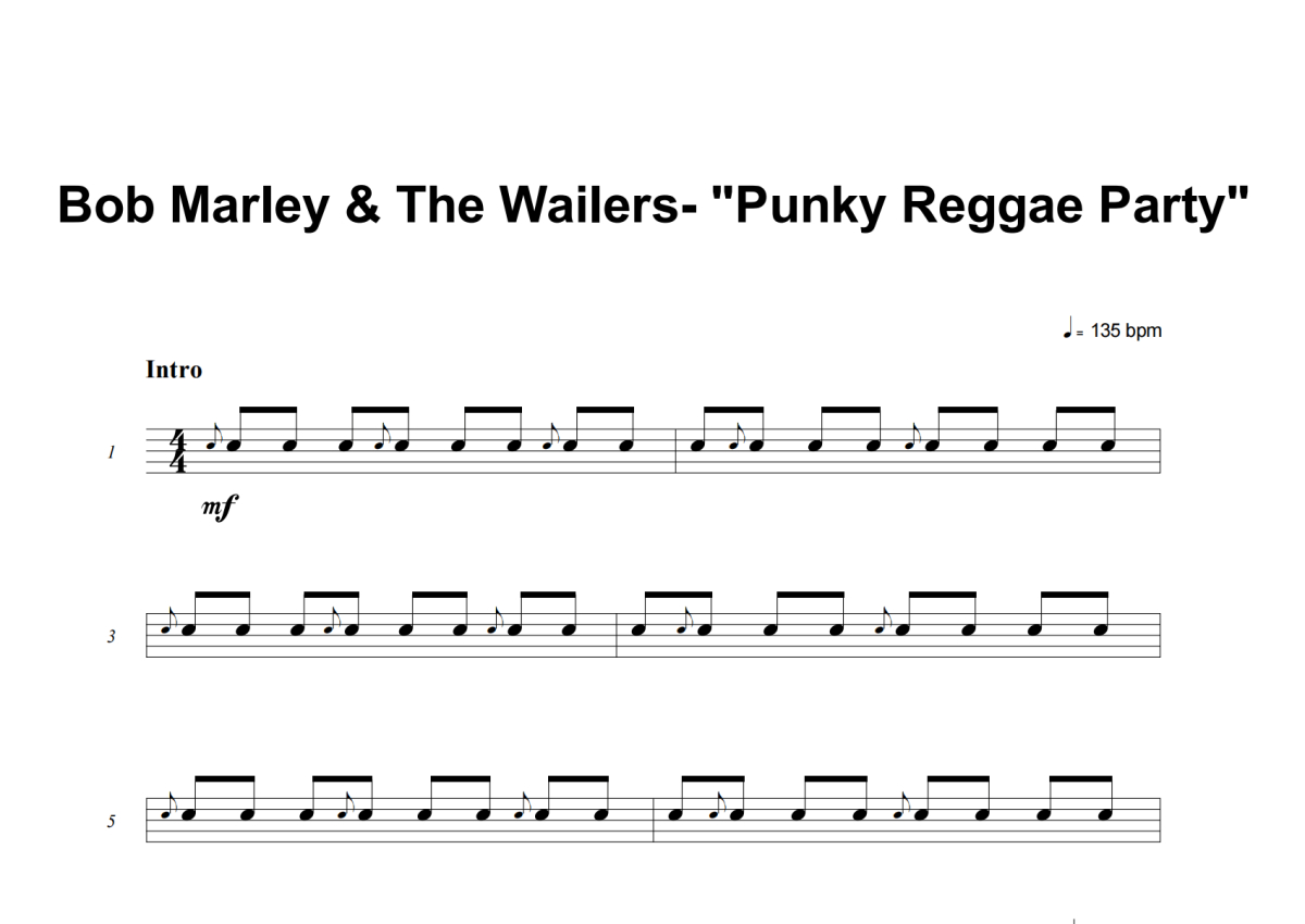 Bob Marley & The Wailers《Punky Reggae Party》架子鼓谱