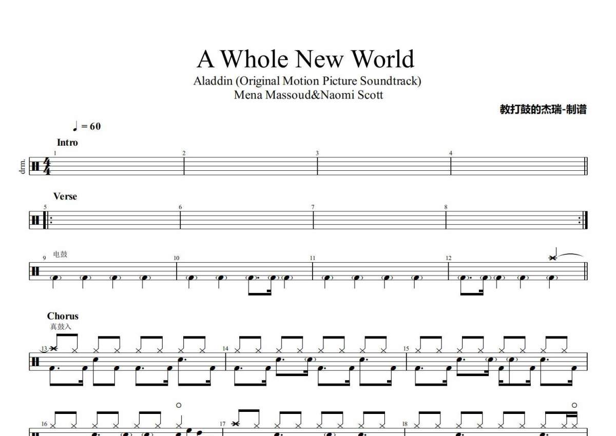 Mena Massoud&Naomi Scott《A Whole New World》架子鼓谱