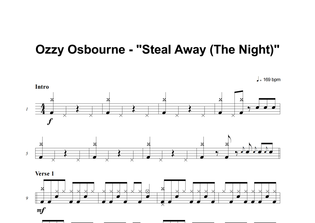 Ozzy Osbourne《Steal Away (The Night)》架子鼓谱