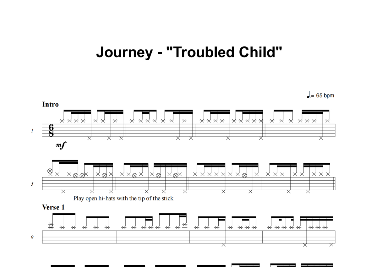 《Troubled Child》是Journey演唱的一首歌曲,这份架子鼓谱共有三张高清图谱,图谱由 @失眠的土豆 编配上传,图谱使用五线谱编配,使用这份Troubled Child架子鼓谱,你将能够轻松地敲打出这首Journey的Troubled Child,快来尝试吧。