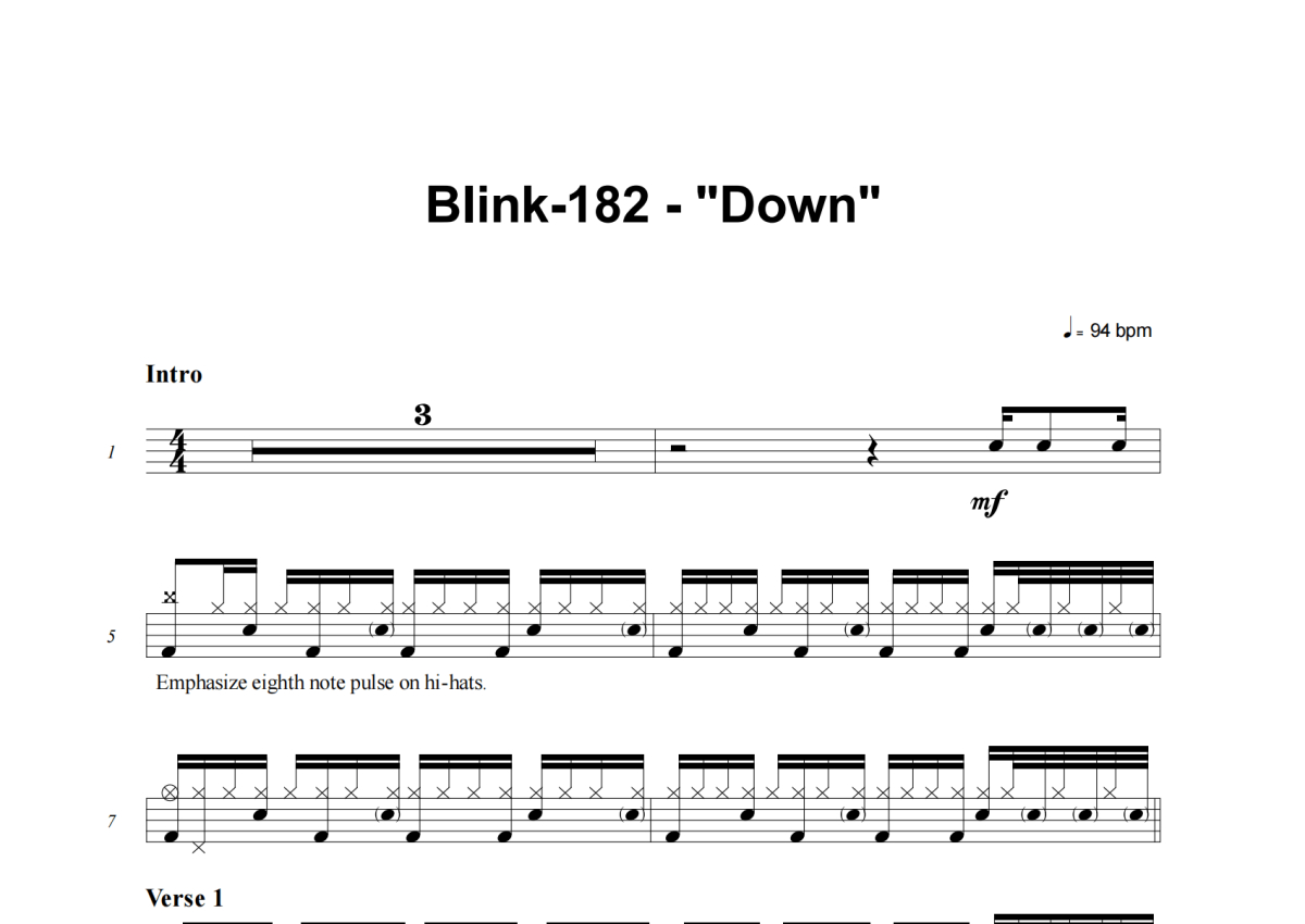 Blink-182《Down》架子鼓谱