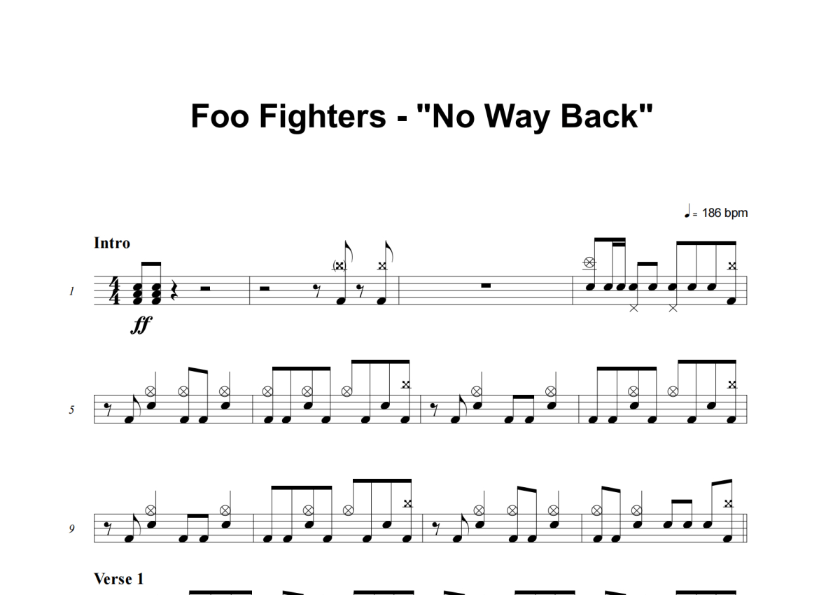 《No Way Back》是Foo Fighters演唱的一首歌曲,这份架子鼓谱共有五张高清图谱,图谱由 @失眠的土豆 编配上传,图谱使用五线谱编配,使用这份No Way Back架子鼓谱,你将能够轻松地敲打出这首Foo Fighters的No Way Back,快来尝试吧。