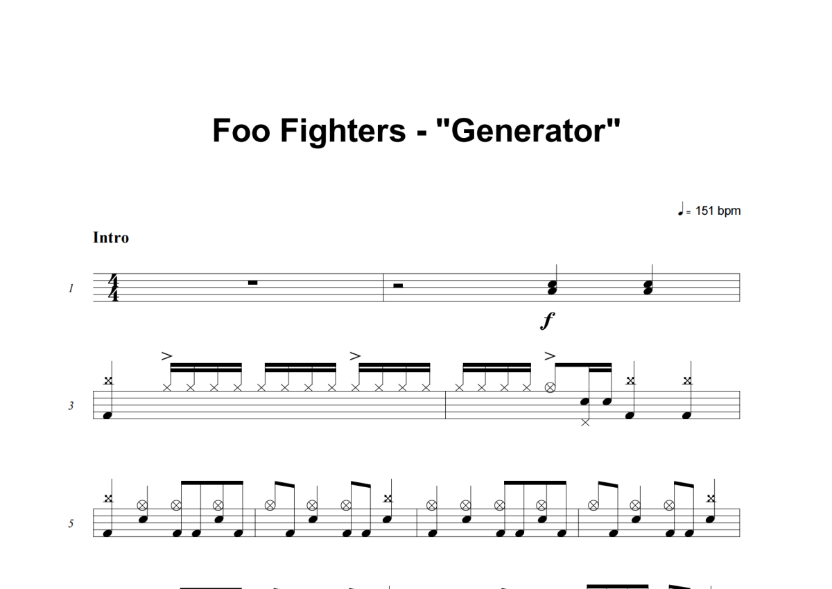 《Generator》是Foo Fighters演唱的一首歌曲,这份架子鼓谱共有五张高清图谱,图谱由 @失眠的土豆 编配上传,图谱使用五线谱编配,使用这份Generator架子鼓谱,你将能够轻松地敲打出这首Foo Fighters的Generator,快来尝试吧。